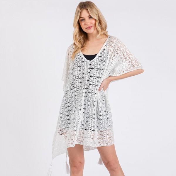 Crochet Lace Swimsuit Cover Up With Tassel Details