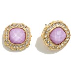 Cushion Cut Rhinestone Stud Earrings With Rhinestone Border