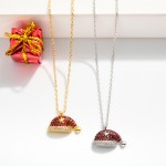Dainty Chain Link Necklace Featuring Cubic Zirconia Santa Hat Pendant