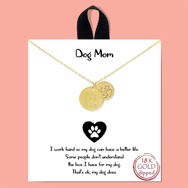 Dainty Chain Link Necklace Featuring Dog Mom and Paw Print Pendants