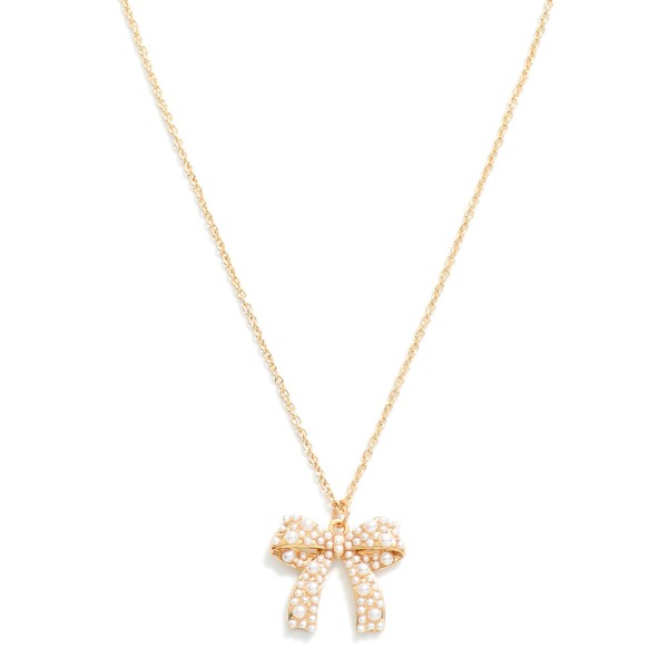 Dainty Chain Link Necklace Featuring Pearl Studded Bow Pendant