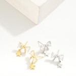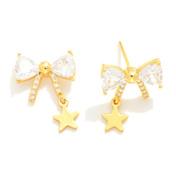 Dainty Gold Dipped Cubic Zirconia Bow Stud Earrings Featuring Star Charms