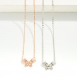 Dainty Metal Tone Chain Link Necklace Featuring Rhinestone Studded Bow Station