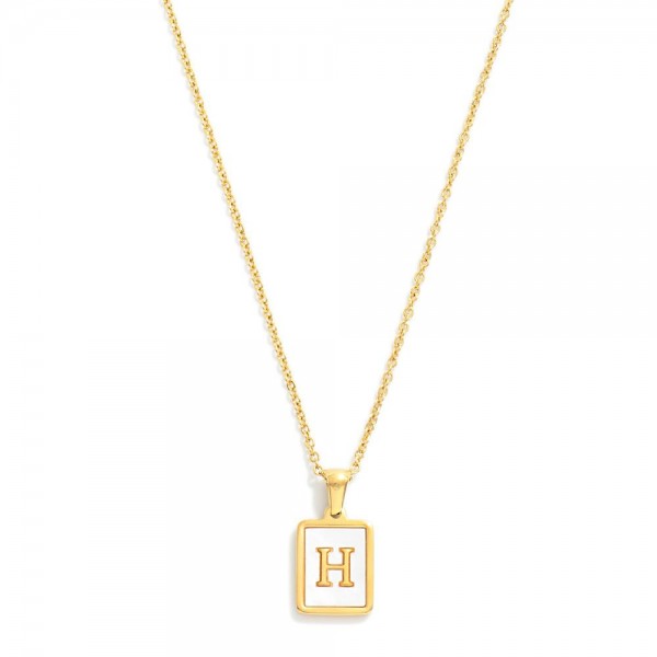 Dainty Stainless Steel Chain Link Necklace Featuring Mother-of-Pearl Inlay Initial Pendant