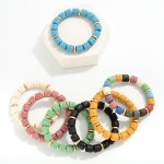Dimpled Wood Beaded Stretch Bracelet With Gold Disc Accents
