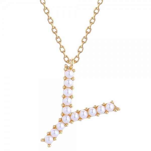 Do Everything In Love Chain Link Necklace Featuring Pearl Studded Initial Pendant