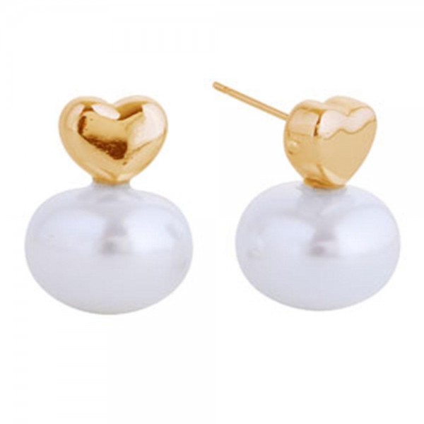 Do Everything In Love Chunky Metal Tone Heart & Pearl Post Drop Earrings