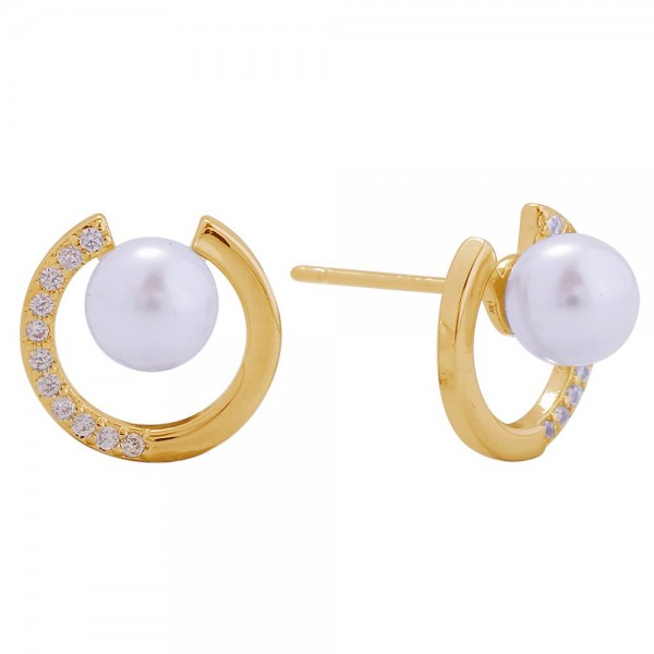 Do Everything In Love Pearl Stud Earrings Featuring Cubic Zirconia Hoop Detail