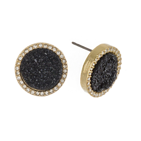 Druzy disc stud earrings with cubic zirconia accents. Approximately .5" in diameter.