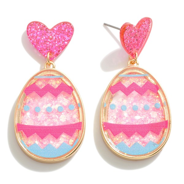 Easter Egg Drop Earrings Featuring Glitter Egg and Heart