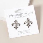 Enamel Fleur-De-Lis Post Drop Earrings Featuring Rhinestone Accents