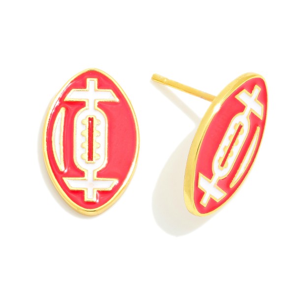 Enamel Coated Gold Dipped Football Stud Earrings
