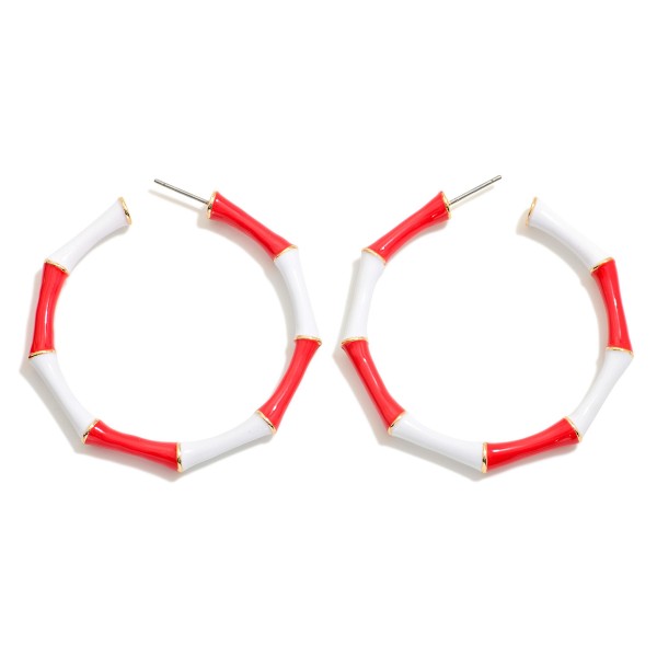 Enamel Coated Metal Bamboo Alternating Game Day Colors Hoop Earrings
