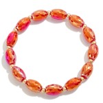 Faceted Beaded Stretch Bracelet With Gold Bead Accents