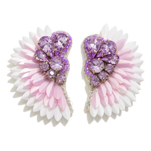 Fanned Feather Drop Earrings With Rhinestone Accents