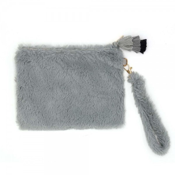 Faux Fur Wristlet Pouch Handbag With Tassel Zipper Pull