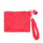 Faux Fur Wristlet Pouch Handbag With Tassel Zipper Pull