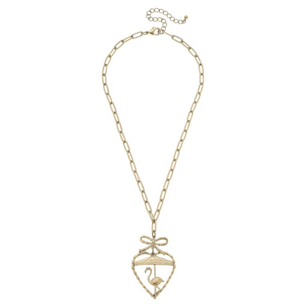 Flamingo And Bamboo Heart Pendant Chain Link necklace