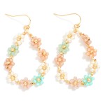 Flower Beaded Teardrop Drop Earrings