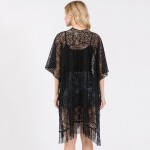 Flower Pattern Crochet Lace Kimono With Fringe Details