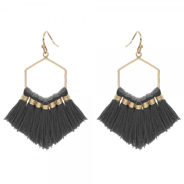 Fringe Tassel Hexagon Drop Earrings in Gold
