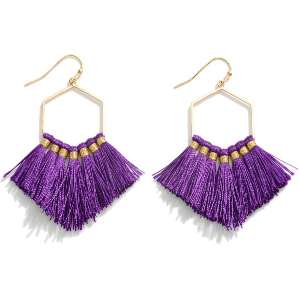 Fringe Tassel Hexagon Drop Earrings in Gold