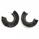 Fringed Raffia Hoop Earrings With Wood Bead Details