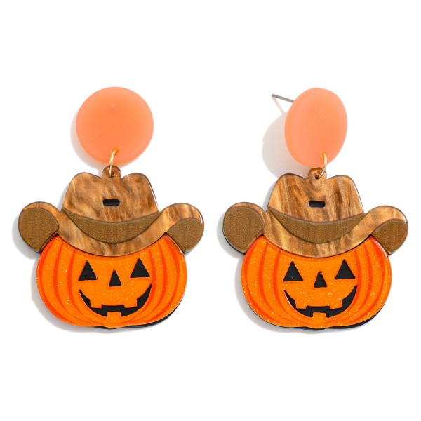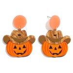 Glitter Acetate Cowboy Jack-o'-Lantern Drop Earrings