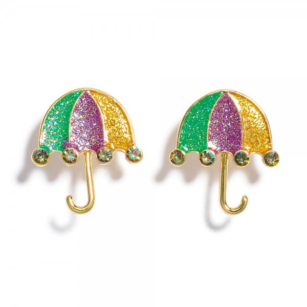 Glitter Enamel Mardi Gras Umbrella Post Drop Earrings