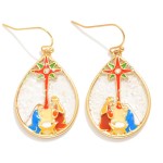 Glitter Resin & Enamel Teardrop Nativity Scene Drop Earrings