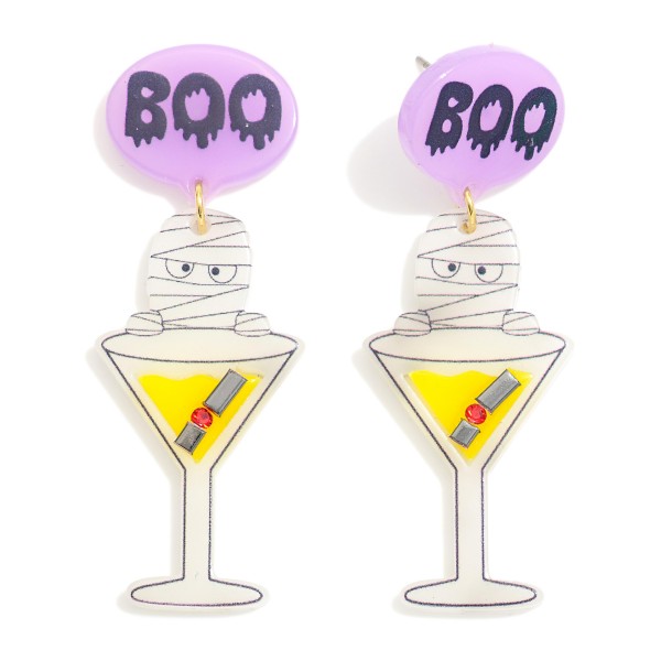 Glow In The Dark Mummy Cocktail Drop Earrings Featuring 'BOO' Post