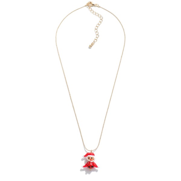 Gold Tone Ball Chain Link Necklace Featuring Glass Santa Charm.