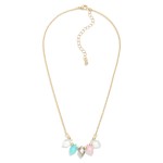 Gold Chain Link Necklace Featuring Crystal Beaded Bar Pendant