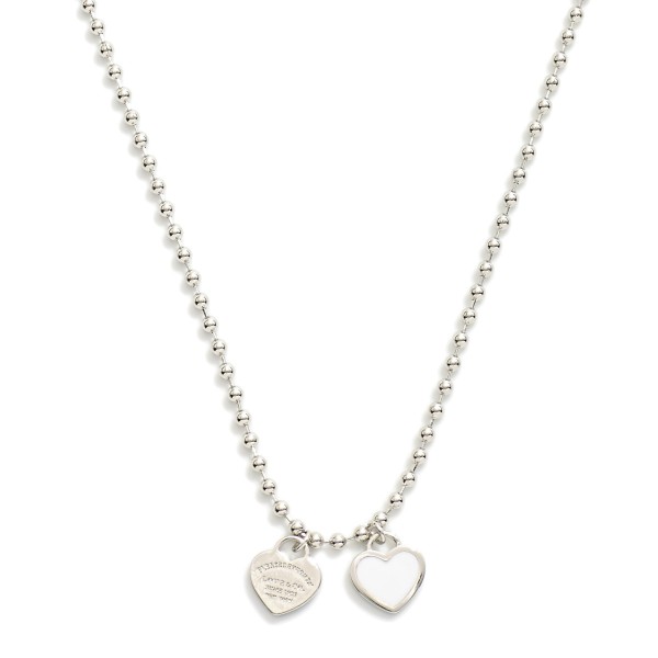 Gold Dipped Ball Chain Necklace Featuring Heart Pendants