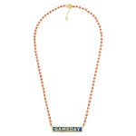 Gold Dipped Chain Link Necklace Featuring Beaded Stations and "GAMEDAY" Bar Pendant