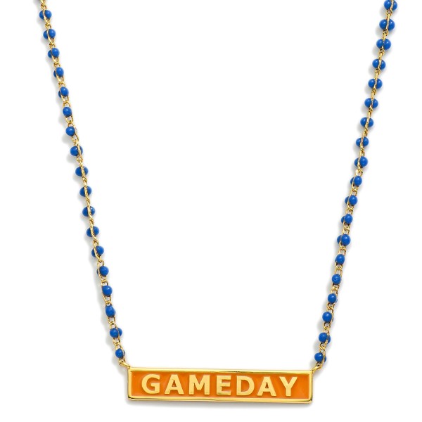 Gold Dipped Chain Link Necklace Featuring Beaded Stations and "GAMEDAY" Bar Pendant