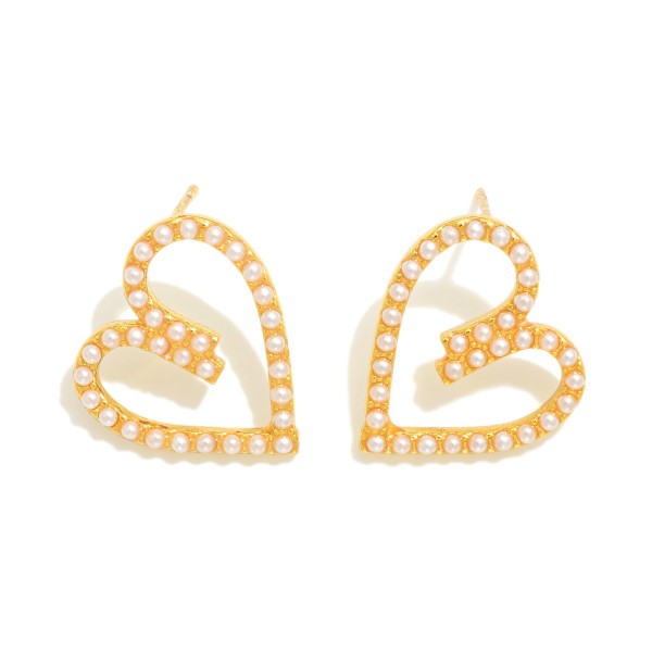 View more Heart Earrings, Pearl Earrings, Gold Dipped, Gold Tone