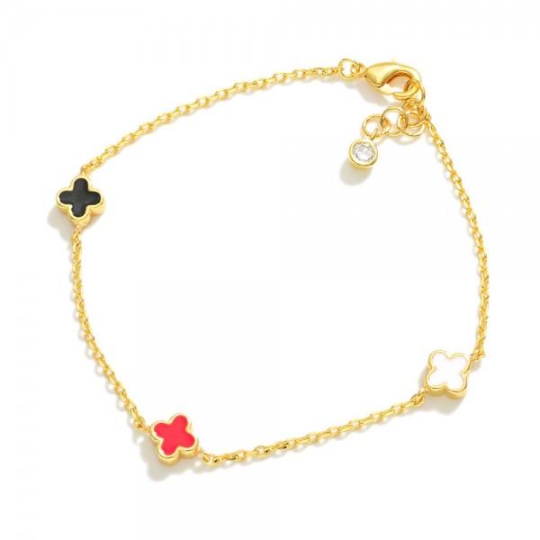 Gold Dipped Dainty Chain Link Bracelet With Clover Stations