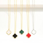 Gold Dipped Dainty Chain Link Necklace Featuring Clover Pendant
