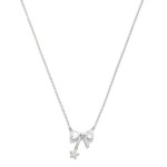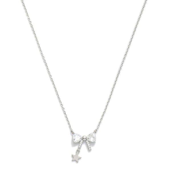 Gold Dipped Dainty Chain Link Necklace Featuring Rhinestone Bow & Star Pendant