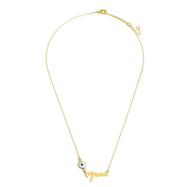 Gold Dipped Evil Eye Necklace that says "Mama".