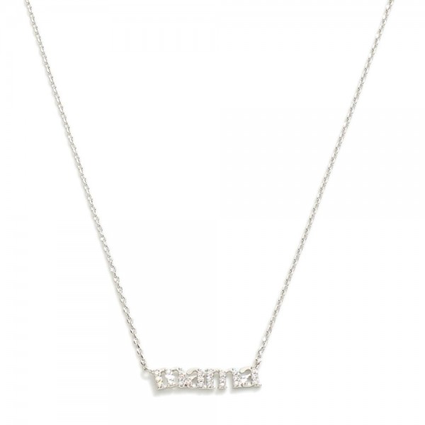 Gold Dipped "mama" Dainty Chain Link Necklace With Rhinestone Detail