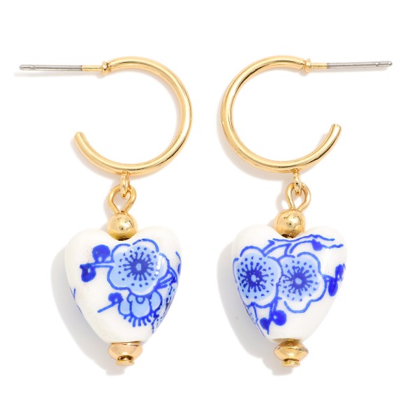 Gold Tone Hoop Earring Featuring Porcelain Chinoiserie Flower Beads