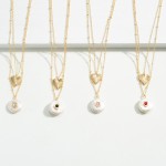 Gold Tone Layered Necklaces Featuring Heart Charm and Freshwater Pearl Pendant With Rhinestone Heart