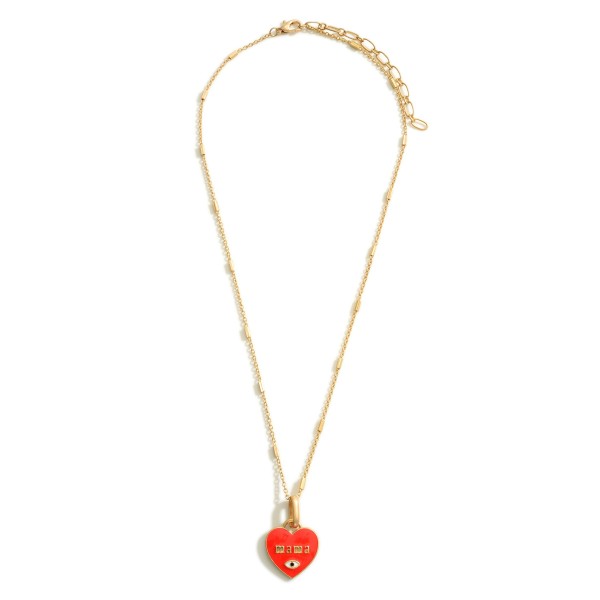 Gold Necklace Featuring a Heart Pendant that Says "Mama"