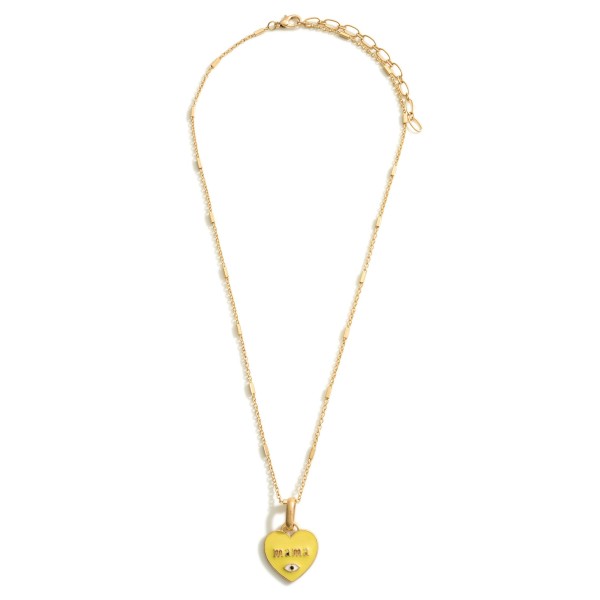 Gold Necklace Featuring a Heart Pendant that Says "Mama"