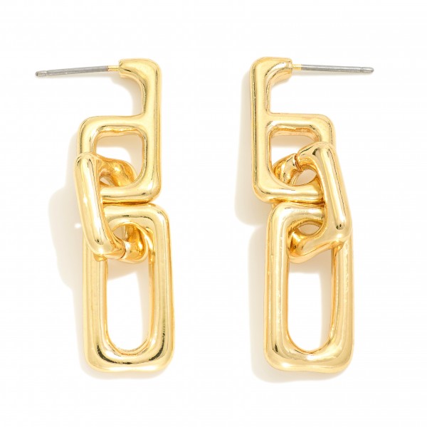 Gold Tone Rounded Rectangle Chain Link Drop Earrings