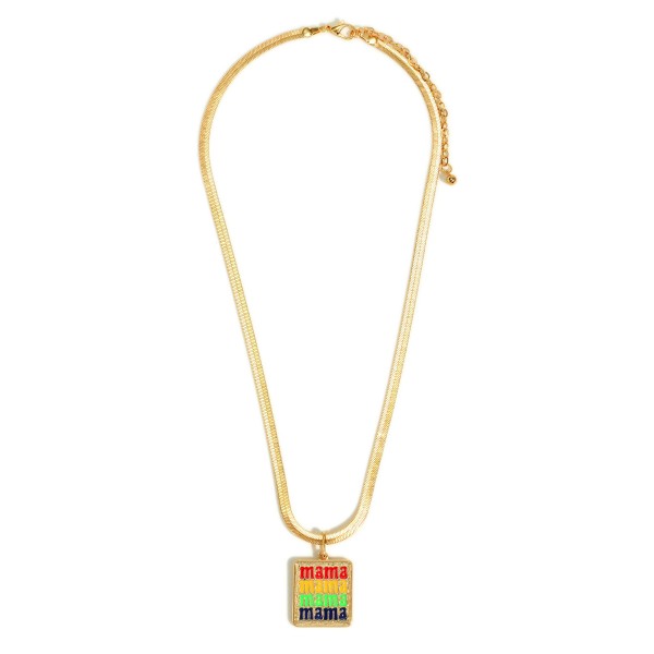 Gold Tone Snake Chain Necklace Featuring Enameled Mama Pendant