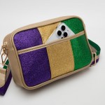 Gold Vegan Leather Glitter Mardi Gras Sling Bag With Guitar Strap