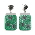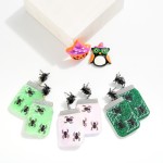 Halloween Acetate Jar With Spider Webs Drop Earrings Featuring Rhinestone Spider Post